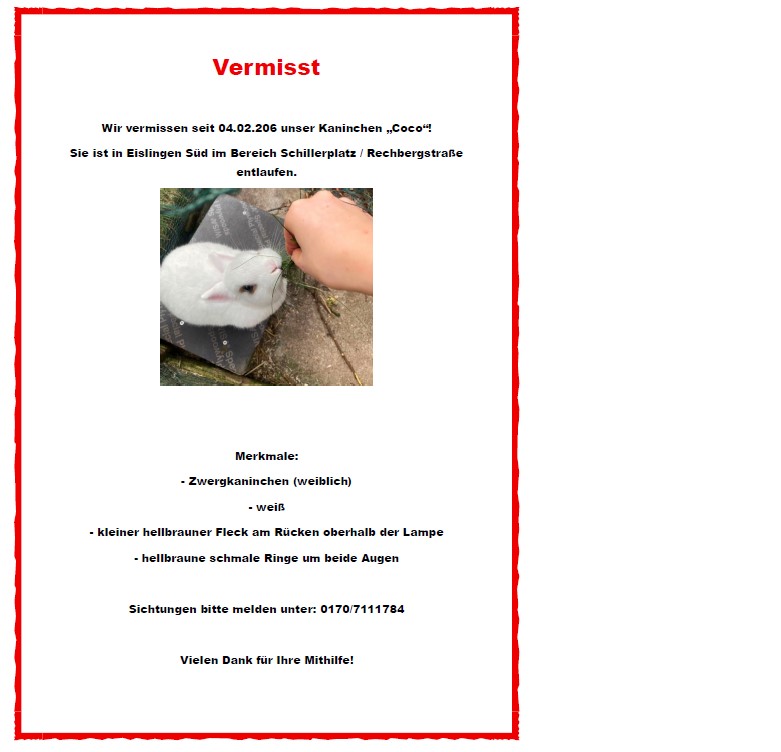 Kaninchen Coco vermisst